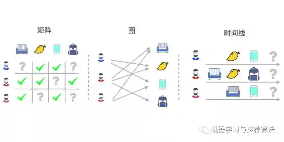 把用户对物品的行为想象成一条时间线,我们已知当前时刻前用户的物品行为序列,推荐问题被转化成了预测下一个时刻用户发生行为的物品。