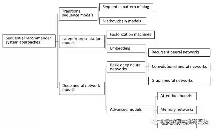 以前模型的输入形式有限,人们通过特征处理将数据组织成模型可以接受的形式;随着深度学习的发展,数据越来越倾向于保存其原有的形式,人们通过模型设计来学习有效的模式。在时间线的视角下,直接用深度模型结构建模序列,预测下一物品,形成了一个可以发挥想象力和燃烧算力的领域——Sequential/Session-base推荐。在2016年的时候,RNN是处理序列问题的标配,它从NLP领域走来,诞生了GRU4Rec算法。受到NLP领域Char-CNN启发,CNN的结构也逐渐用于建模序列结构,Attention机制大火之后,RNN+Attention,CNN+Attention,RNN+CNN+Attention被枚举了一遍。随着google老师的BERT取得NLP领域巨大成就,Self-Attention以及多层的Transformer结构开始成为序列建模的常规配置。最近的文章里,图神经网络(GNN),Memory networks,变分自编码器(VAE)也成为了序列推荐领域的深度乐高积木。