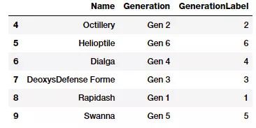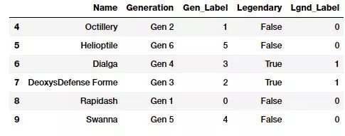 这里关注的属性是神奇宝贝的「世代(Generation)」和「传奇(Legendary)」状态。第一步是根据之前学到的将这些属性转换为数值表示。