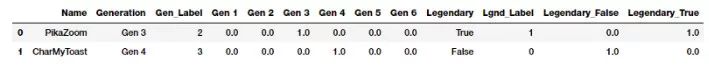 columns = sum([['Name', 'Generation', 'Gen_Label'], gen_feature_labels, ['Legendary', 'Lgnd_Label'], leg_feature_labels], [])