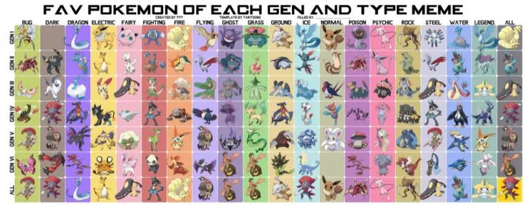 基于不同类型和世代选出的一些受欢迎的神奇宝贝