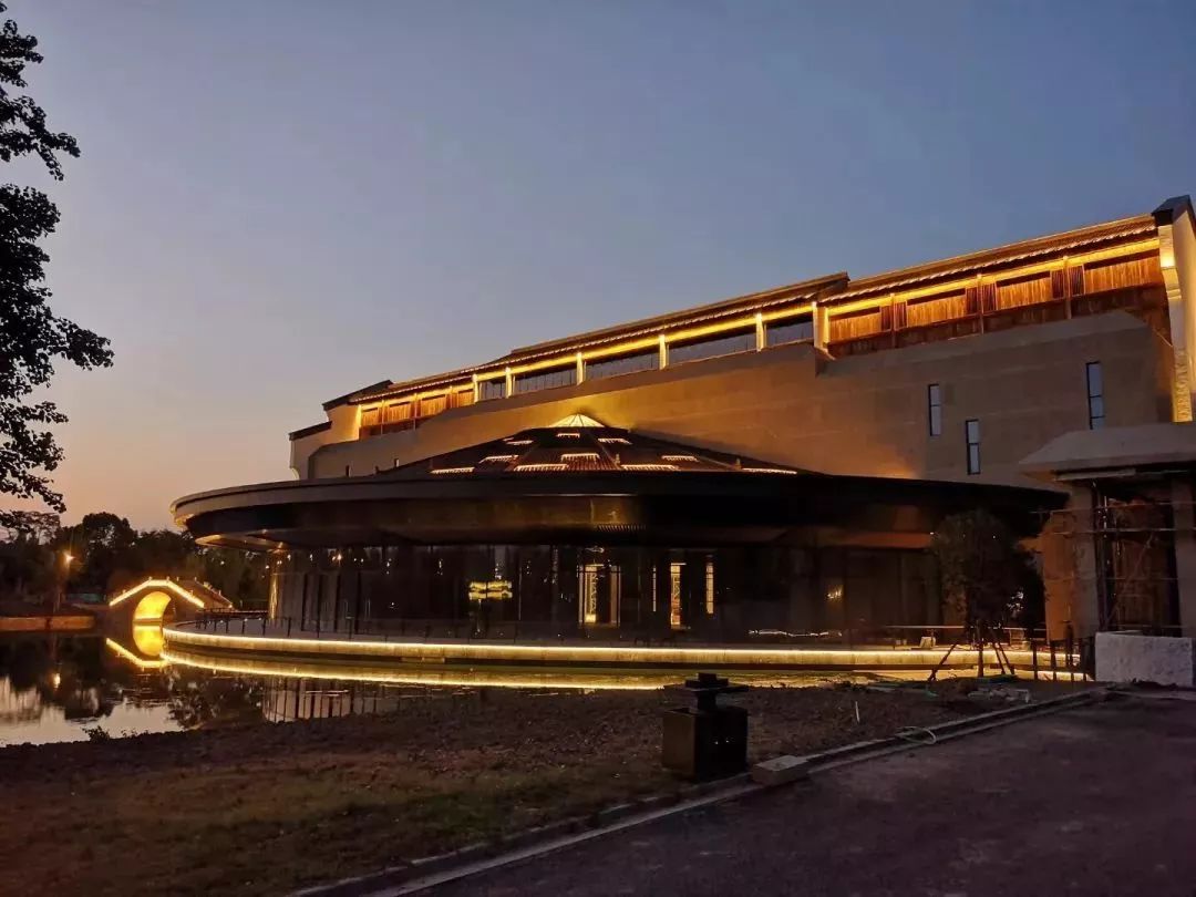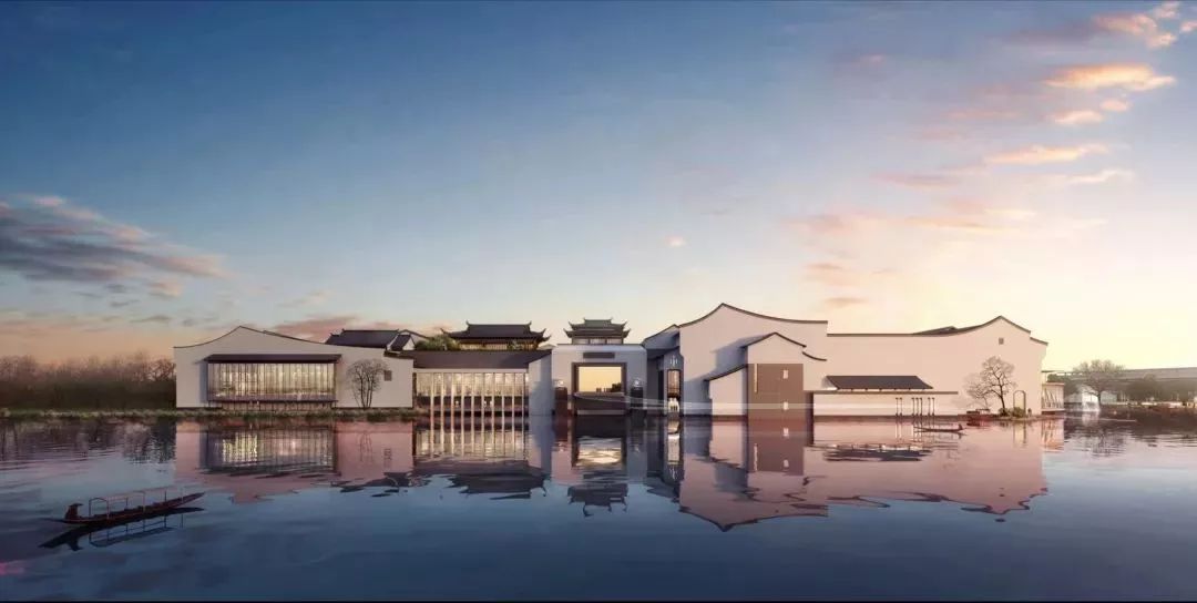 据悉,宴会中心建筑风格是传统与现代的有机结合,充分考虑了互联网元素、中国传统文化及江南水乡特色,呈现了斗拱、马头墙、塔楼、青瓦等江南水乡元素与互联网相融共生的和美场景。