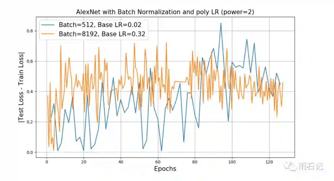 如上图所示,可以看到,Test Loss - Train Loss在Batch等于512和8192的时候都基本一致。