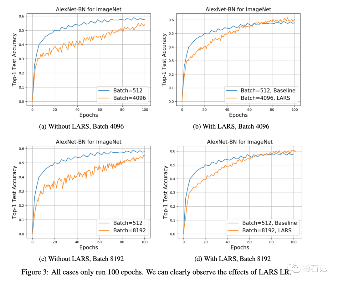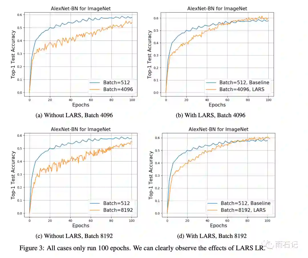 有了LARS之后,就可以在AlexNet上把批大小从1024提高的8192.