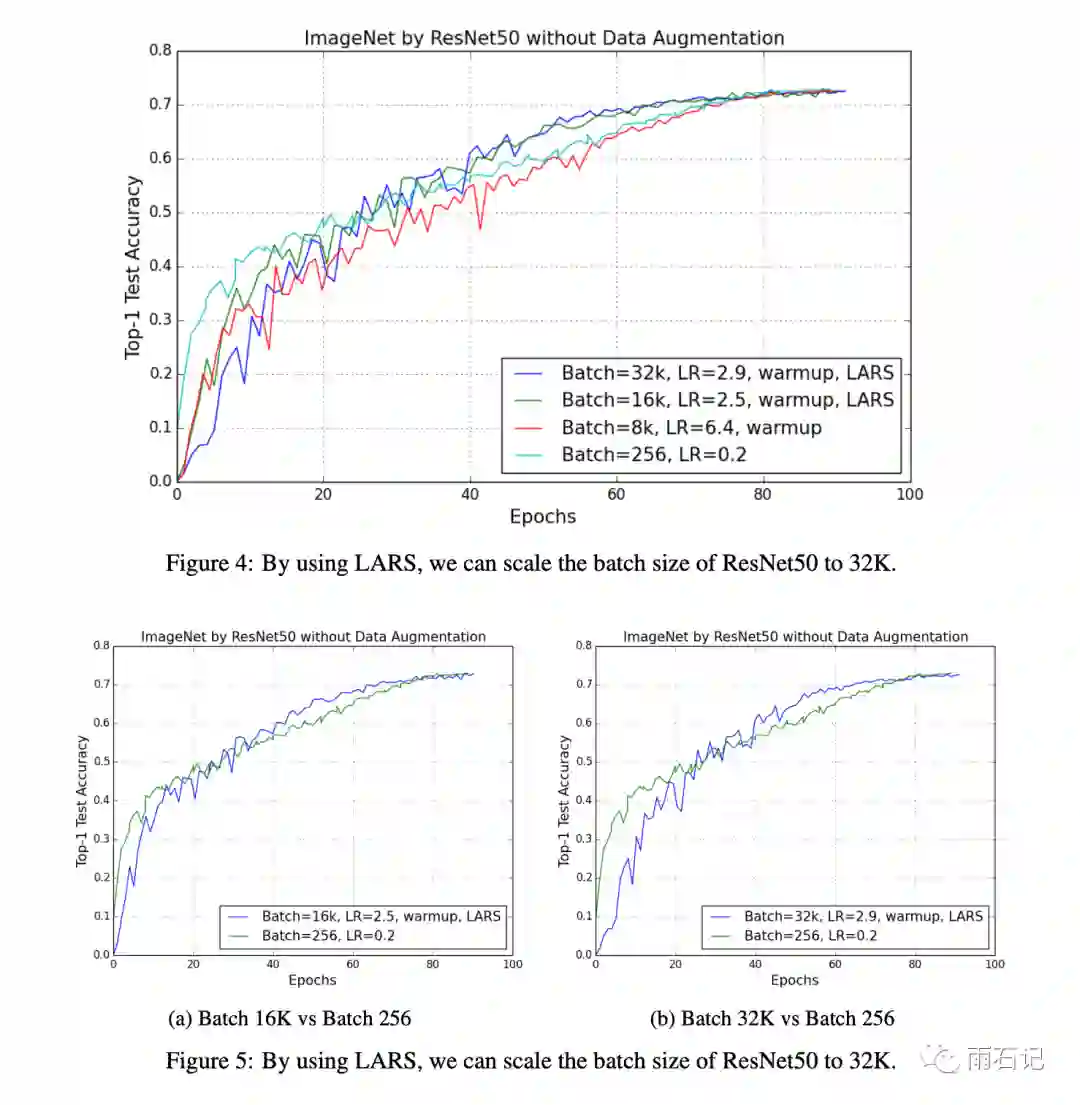 还可以在ResNet上把批大小扩展到32k而不会导致最后效果的变差。