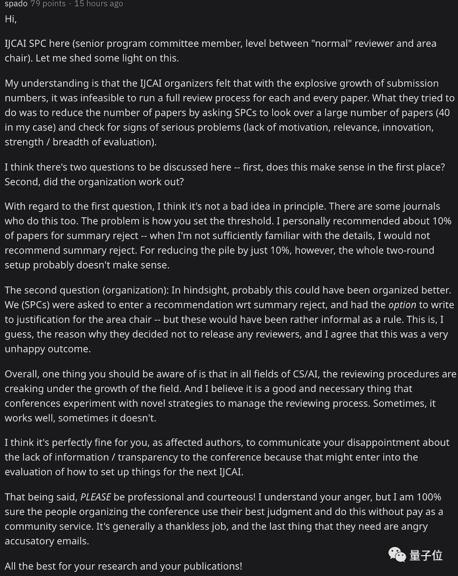 我的理解是,IJCAI的组织者认为,随着提交数量的爆炸性增长,对每一篇论文进行完整的审查是不可行的。他们试图减少论文数量,方法是让SPC查阅大量论文(我的情况是40篇),并检查严重问题的迹象(缺乏动机、相关性、创新、评估的力度/广度)。