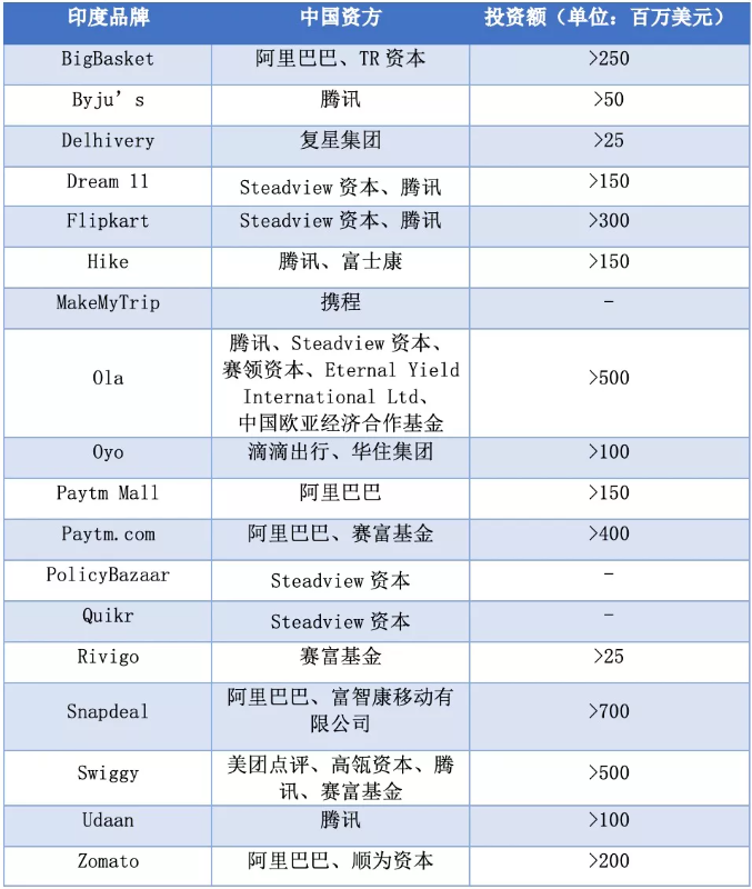 印度独角兽公司背后的中国资方