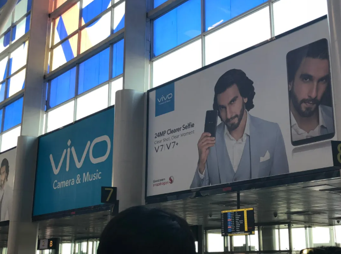 印度随处可见中国企业的广告,2018年笔者摄于印度新德里机场