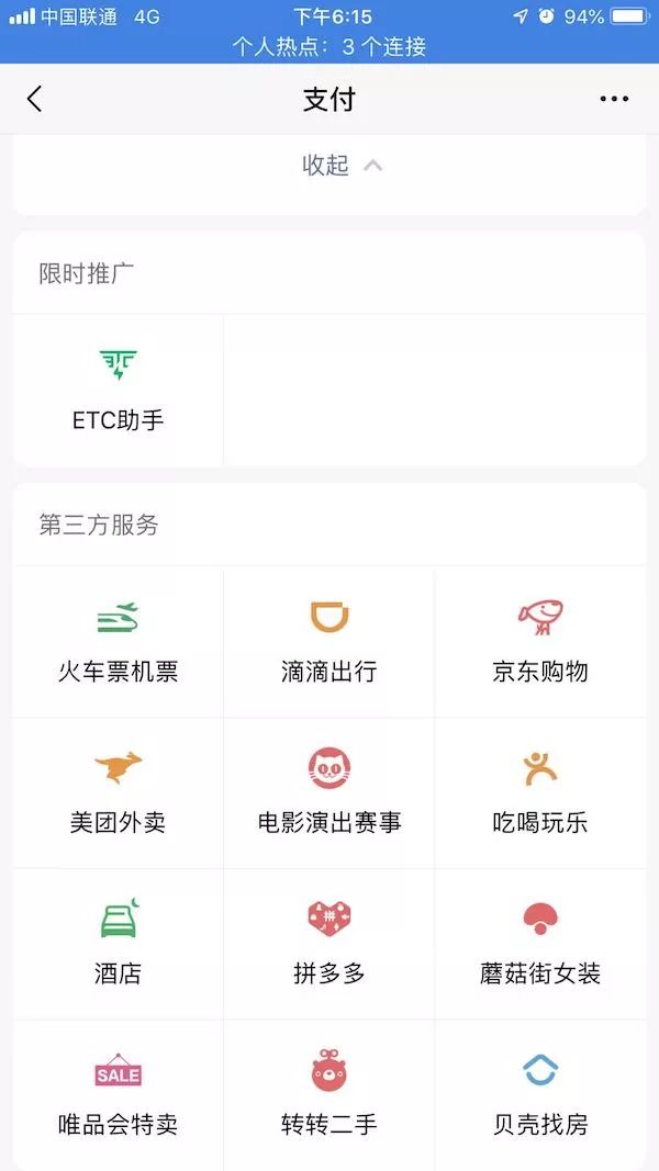 另外,在微信支付界面中,是给拼多多留了一个位置的。
