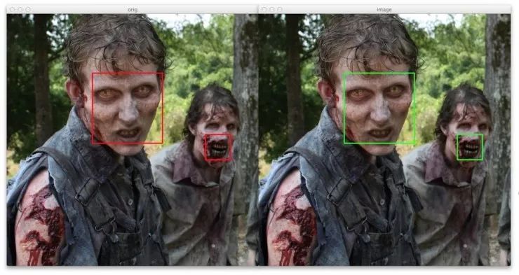 图 2:这个图看起来我们的人脸检测器没有推广的很好——对检测器而言,这个僵尸的牙齿看起来像是一张脸。