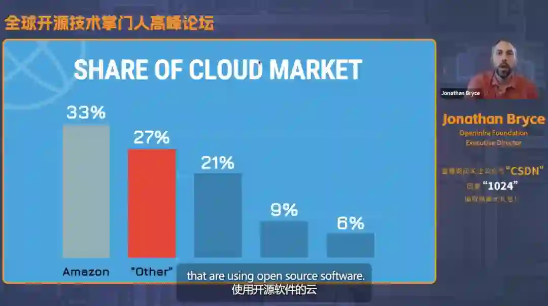 对于开源领域现状,他表示,“开源已经成为被广泛采用的技术趋势,我们面前还有更多的机会,比如云市场仍有较大的增长机会,获得更大的‘技术蛋糕’。”对于这一机遇,他认为,“如果我们可以将所有技术转移到现代公共和私有云类型的配置中,就有可能获得 20 倍的回报。”