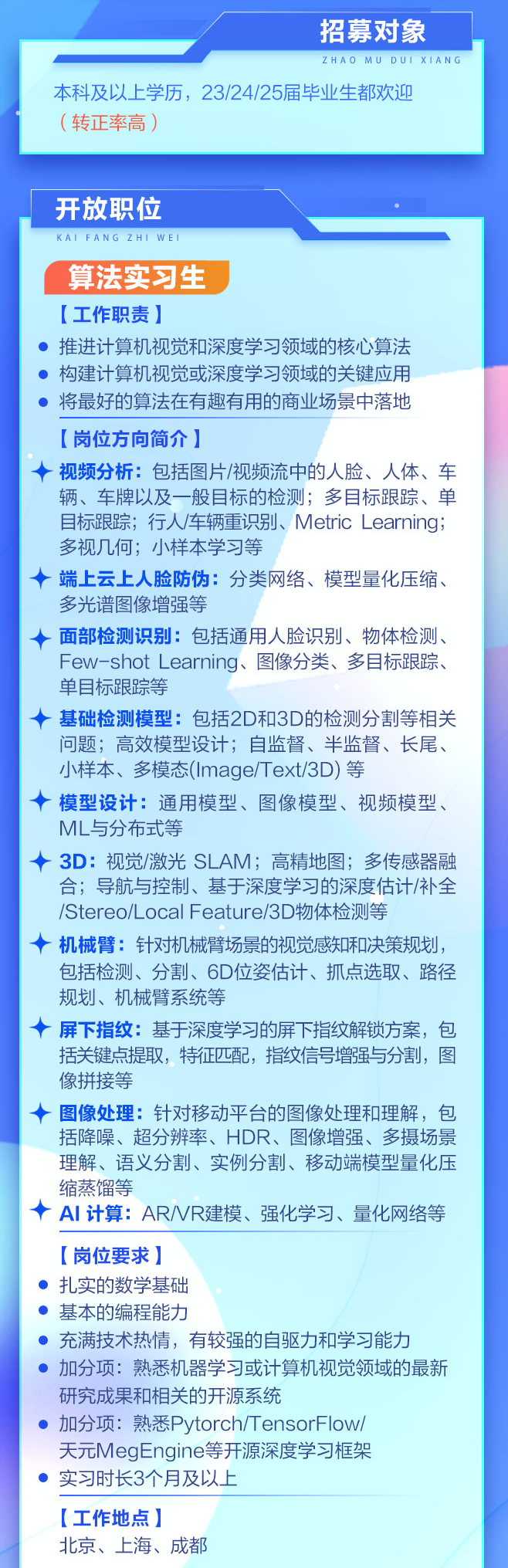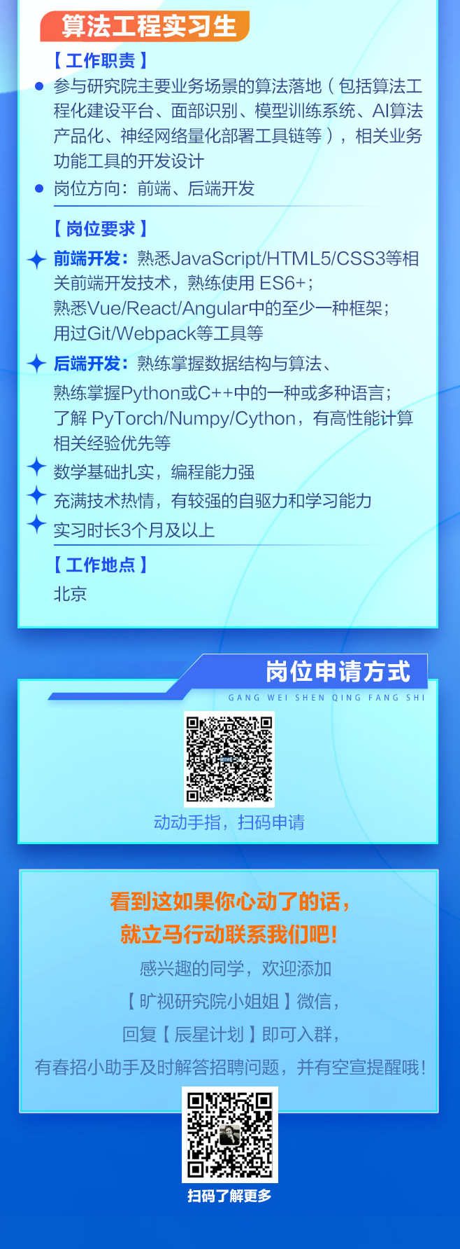 辰星计划2022 | 旷视研究院春季实习生招募开始啦!
