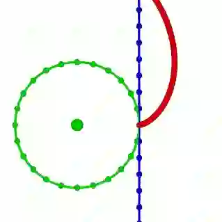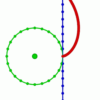 圆的渐开线,指的是将一根绕在圆上的绳子不断拉直展开,其顶点走过的曲线,图片来自 Hyrodium's Graphical MathLand
