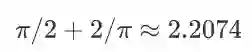 中间的挖掉的半圆半径其实可以在 0 到 1 中间任意取值,这些沙发都可以穿过 L 形的走廊。通过对一个二次函数取极值,我们就能求出最终沙发中间部分的半径应当取为 2/pi ,那么这时沙发的沙发常数就变成了