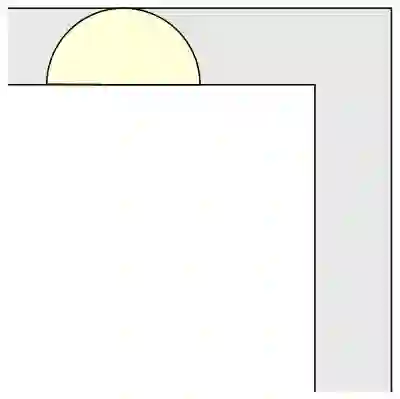 在这个转角的地方,我们需要转过 90 度。我们可以充分地发挥利用这个转角,使用排水沟过弯法,让沙发卡住转角的顶点处,从而整个转过去。此时可以通过的整个沙发是半圆形。我们的沙发常数也一下子可以跃升到 1.57,也就是圆周率的一半。