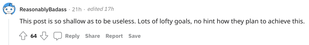 「虽然有很多远大的目标,却完全没有提到他们将如何去实现。」