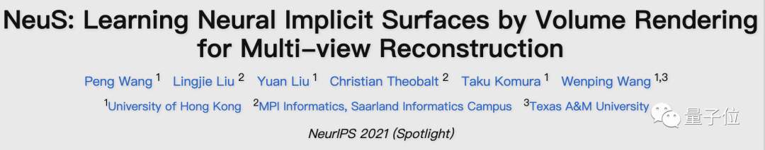 具体来说,这项研究的基本框架借鉴了NeurIPS 2021上的NeuS,一种把隐式神经标准和体积渲染结合起来的方法。