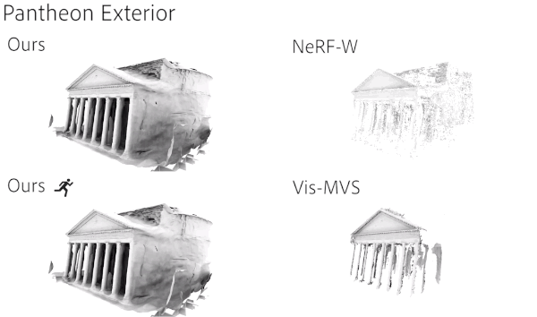 还有一个难以解决的问题,就是照片拍不到的建筑物背面和内部就无法精确重建了。