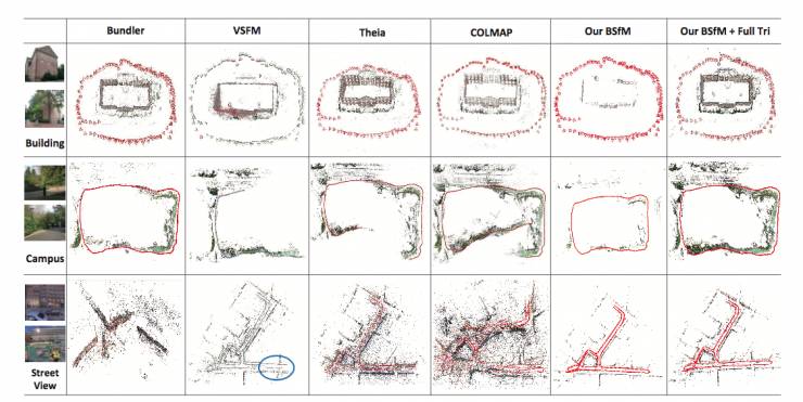 SfM(Structure-from-Motion)技术在鲁棒性和准确性方面都有所提高,但效率和可扩展性仍然是其关键挑战。本文提出了一种新颖的批量增量SfM技术,在包含两个迭代循环的统一框架中解决这些问题。内循环是轨道三角循环,其中提出了一种新颖的轨道选择方法来找到用于束调整(BA)的轨道的紧凑子集。外环是相机注册循环,其中同时添加一批相机以减小漂移风险并减少BA的运行时间。通过轨道选择和批量摄像机登记,作者发现这两个迭代循环快速收敛。实验表明,这个新的SfM系统相比当下许多最先进的SfM系统,在相机校准精度方面表现相似或更好,而对于大规模场景重建而言,它则更有效率、可靠性更高且具有可扩展性。