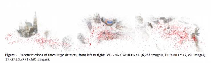 文章提出了一种类似图像匹配的方法,可有效的用于大规模运动恢复结构问题(Structure from Motion, SfM)中。不同于现有解决SFM问题中,使用词汇表(Voc)来避免蛮力搜索并快速构建匹配图的方法。本文研究人员提出的Graph Match方法,不需要在预处理阶段构建繁杂的词汇表,通过两方面的先验数据检测相似的图相对,更高效匹配图像。先验数据一方面来自与对任意两幅图像的Fisher vector即似然函数的梯度向量评估所得数据,另一方面基于对底层匹配图中顶点之间的图像距离评估所得。进过研究人员的实验证明,Graph Match方法与其他相似的图像匹配算法相比更加有效。这无疑是在解决计算机视觉大规模运动恢复结构问题方向的又一重大突破。