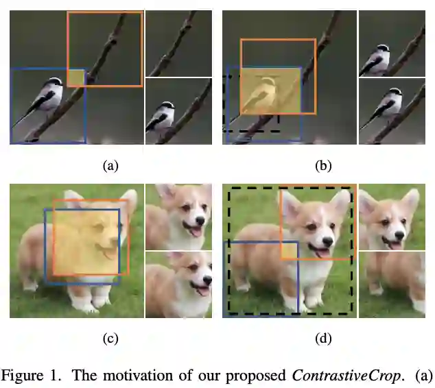 对于高性能连体表示学习,关键之一是设计好的对比对。大多数以前的工作只是简单地应用随机采样来对同一图像进行不同的裁剪,这忽略了可能降低视图质量的语义信息。本文提出 ContrastiveCrop,它可以有效地为连体表示学习生成更好的作物。值得注意的是,本文方法仔细考虑了用于对比学习的正对,而额外的训练开销可以忽略不计。作为一个即插即用且与框架无关的模块,ContrastiveCrop 在 CIFAR-10、CIFAR-100、Tiny ImageNet 和 STL-10 上持续将 SimCLR、MoCo、BYOL、SimSiam 的分类精度提高 0.4% ∼ 2.0%。