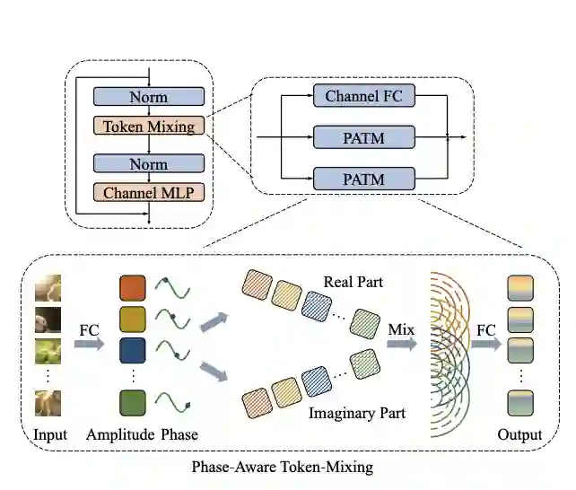 在CV领域的最近工作表明,主要由全连接层堆叠的纯 MLP 架构可以实现与 CNN 和 Transformer 竞争的性能。视觉 MLP 的输入图像通常被拆分为多个tokens,而现有的 MLP 模型直接将它们以固定的权重聚合,忽略了来自不同图像的tokens的变化语义信息。为了动态聚合tokens,本文建议将每个token表示为具有振幅和相位两部分的波函数。基于类波token表示,本文为视觉任务建立了一种新颖的 Wave-MLP 架构。大量实验表明,在图像分类、对象检测和语义分割等各种视觉任务上,所提出的 Wave-MLP 优于最先进的 MLP 架构。