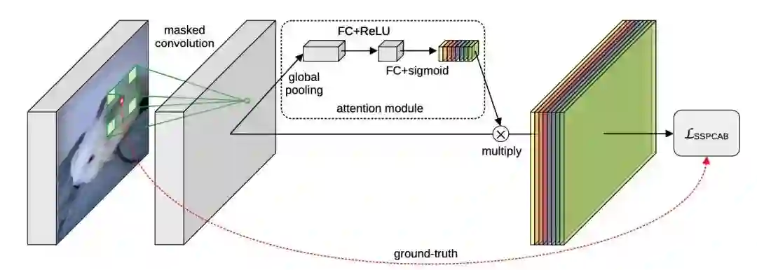 本文提出了一种由掩码卷积层和通道注意模块组成的新型模块 SSPCAB,它可以预测卷积感受野中的掩码区域。SSPCAB以自监督的方式通过自身的重建损失进行训练。这一自监督块是通用的,并且可以很容易地融入到各种最先进的异常检测方法中。SSPCAB 从一个带有扩张滤波器的卷积层开始,其中感受野的中心区域被掩码,生成的激活图通过通道注意模块传递,同时配置了一个损失,可以最大限度地减少感受野中被掩码区域的重建误差。SSPCAB 在图像和视频异常检测任务上都验证了其对性能的提升。