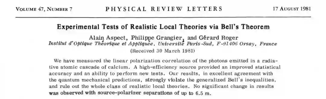 阿兰·阿斯佩克特在1981年发表的实验论文(来源:PRL)