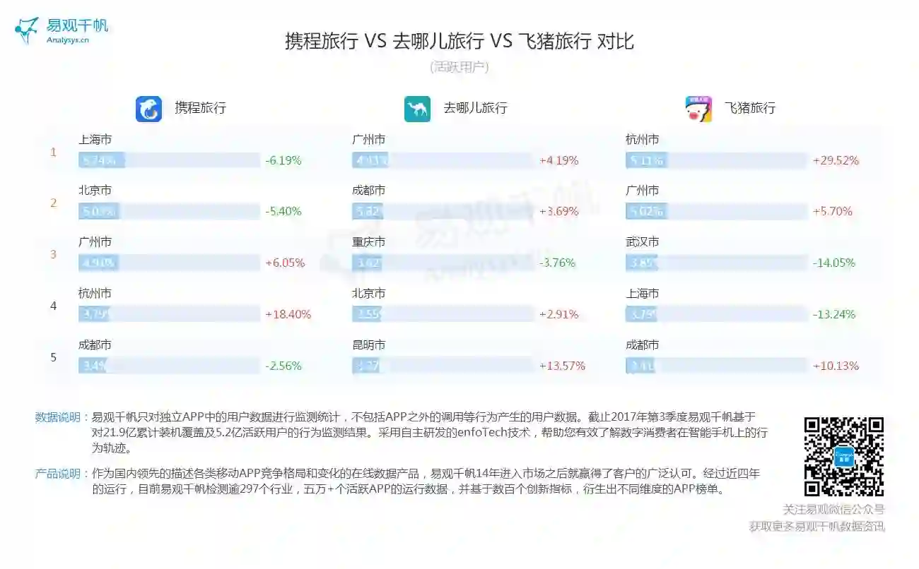 而从榜单中也可以看出该领域寡头明显,携程和去哪儿,以及阿里系的飞猪旅游均排在占据前三。