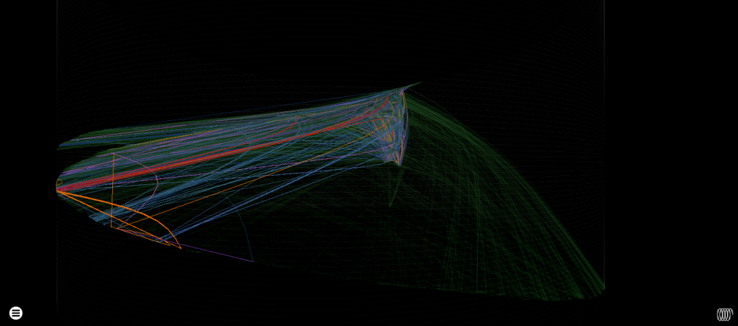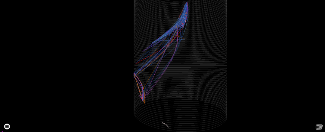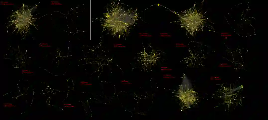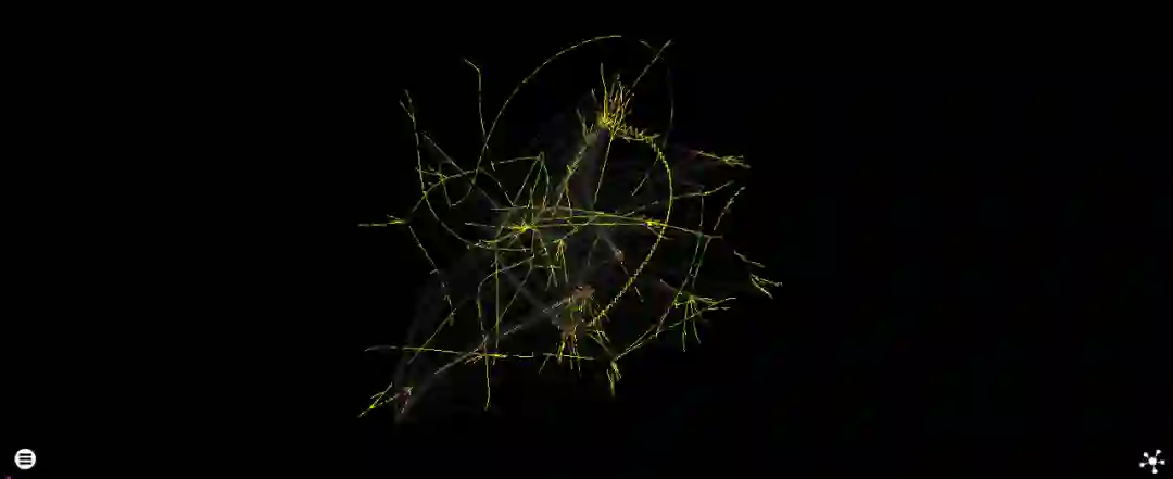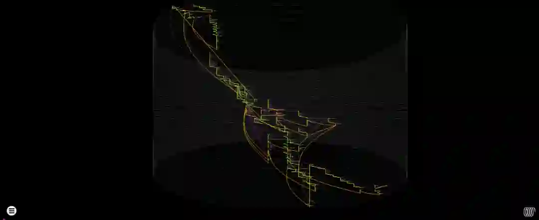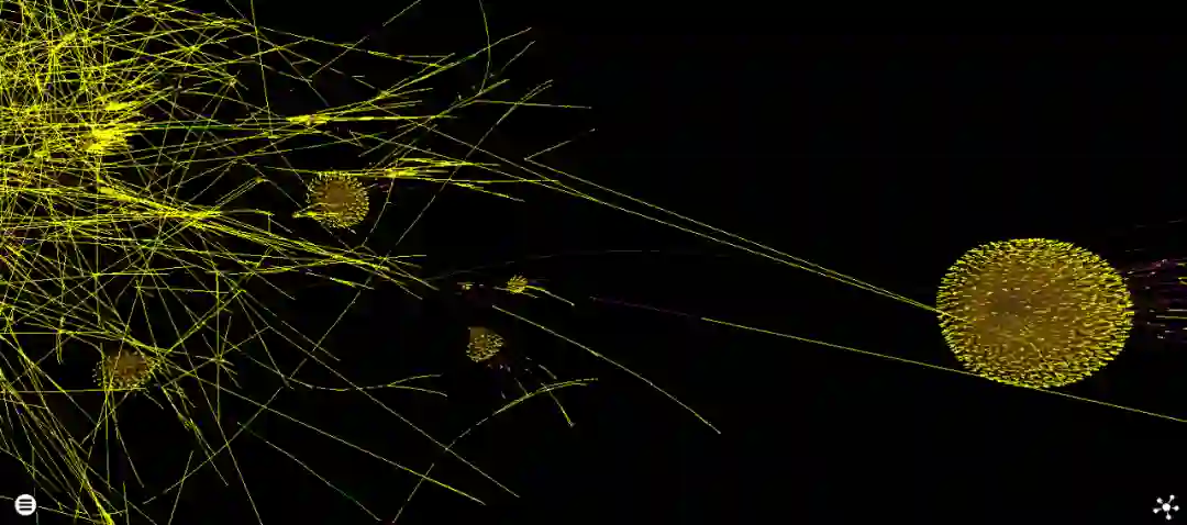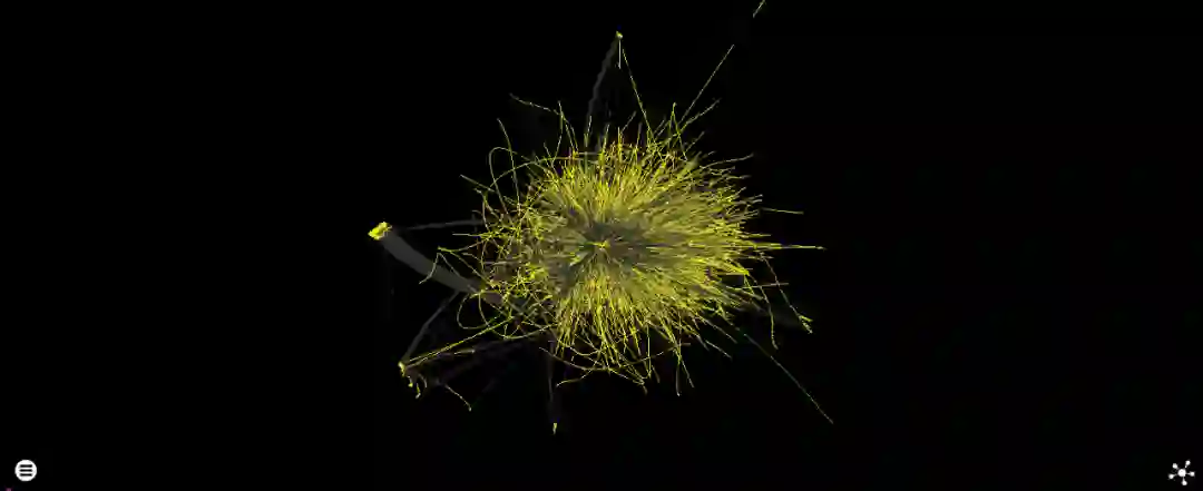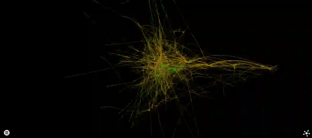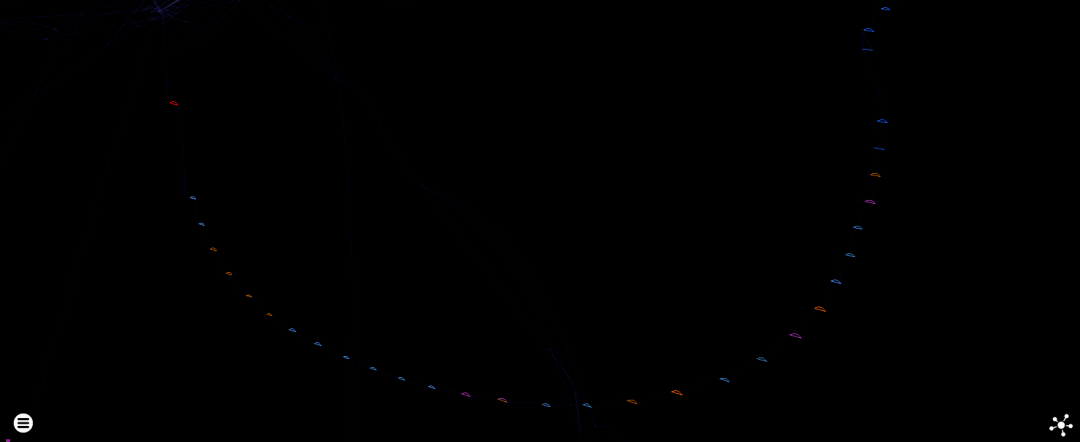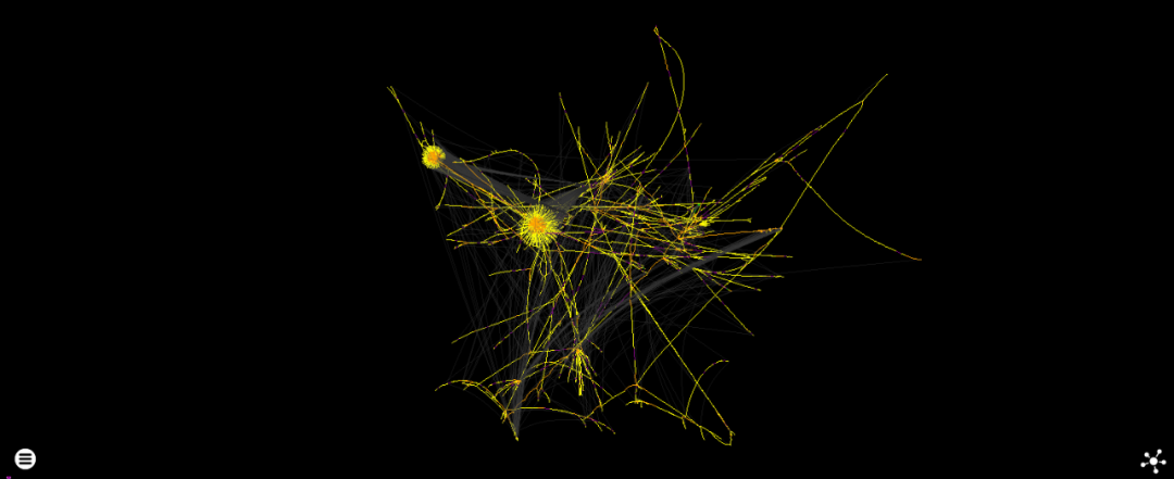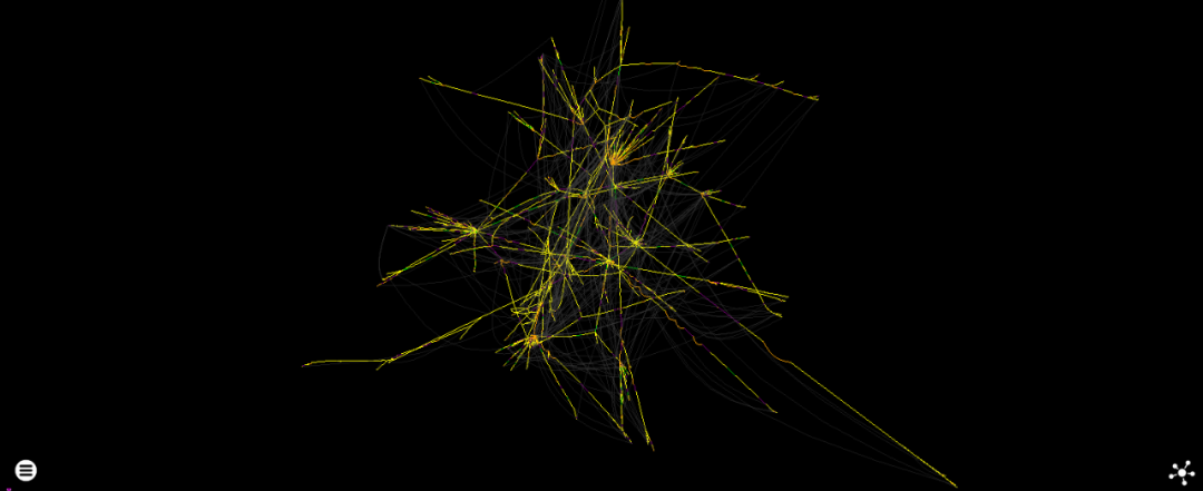主线程的力导向图符合预期——不难想象,2.05亿条指令生成的踪迹图,如果施加一个牵引力试图让它更好看些,那就会是这个样子。图中共有36万个节点。