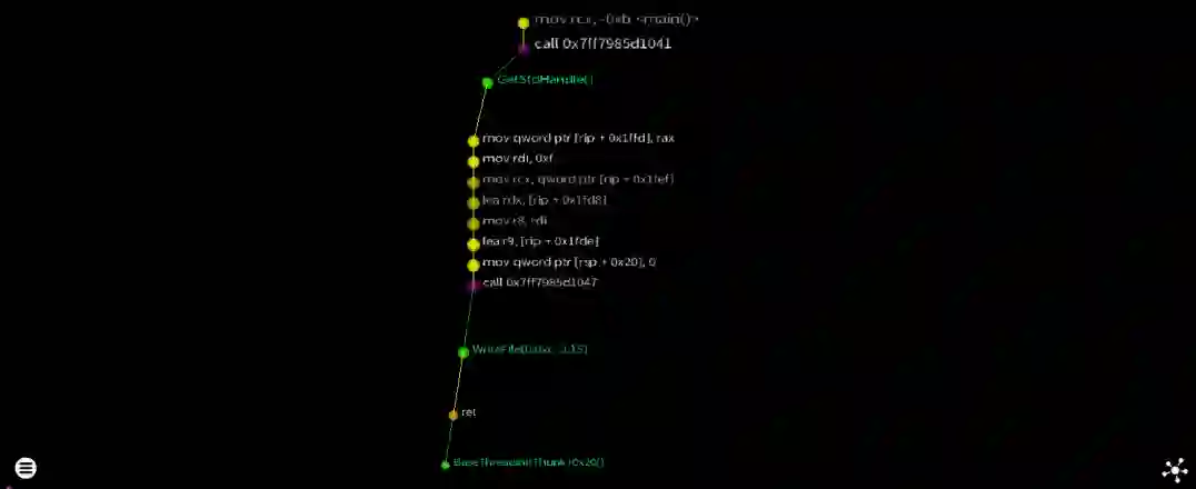 免责声明:本文中的图表是针对每种语言在 Windows 下的编译结果或解释器,对其指令踪迹进行的可视化。这些图表都是为了测试rgat而创建的,其目的并非从时间或空间的角度评价各个语言。
