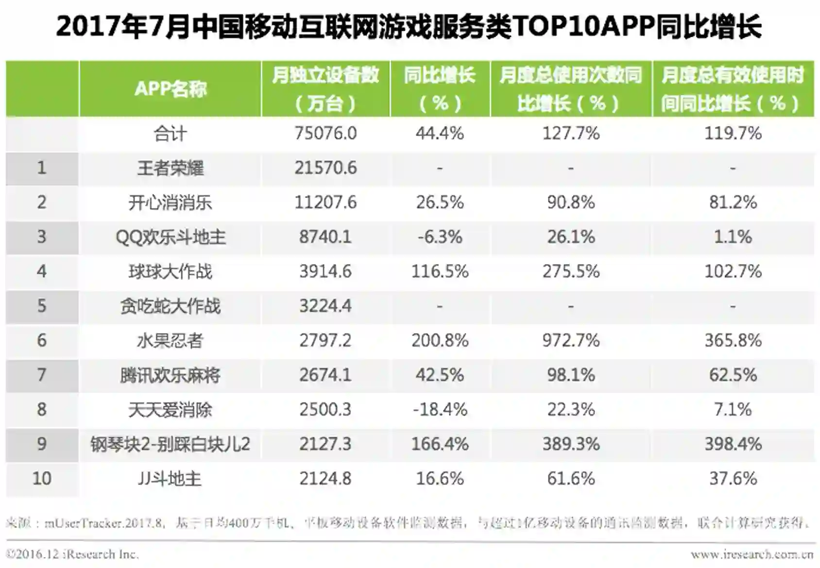 游戏服务类:王者荣耀和贪吃蛇大作战为行业新晋黑马,水果忍者和钢琴块2迅增
