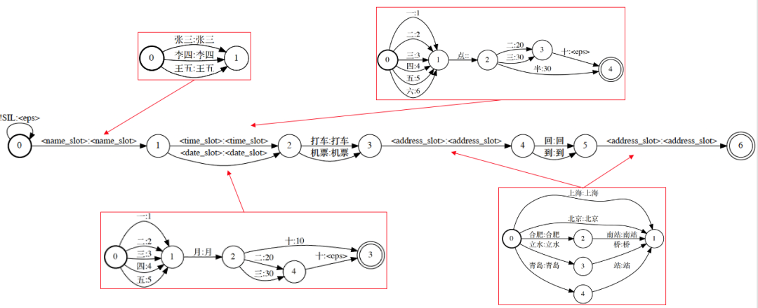 基于 WFST 的个性化识别方案,支持特定场景的语音识别任务。例如交通报销场景,针对通用语音识别对 POI 、日期、时间等实体识别效果差,通过基于 WFST 的个性化识别可以提升识别的准确率。在打车报销内部测试集上,通用识别 CER 为5.4%,优化后 CER 为1.32%,绝对提升4.08%。