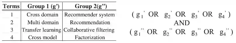 频率最高的短语在二级研究中往往都是成对出现的,例如跨领域、推荐系统、协同过滤、迁移学习、矩阵分解等。本文的搜索关键词依据前期的短语统计,使用表5中的短语生成。