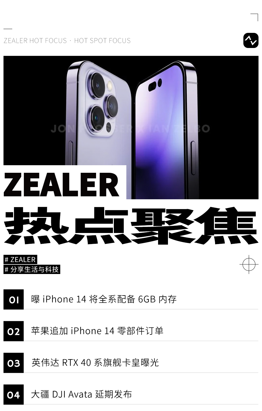 作为对比,当前的 iPhone 13 Pro、Pro Max 搭载 6GB LPDDR4X 内存,iPhone 13、13 mini 搭载 4GB LPDDR4X 内存。在内存规格上,iPhone 14 是全系都有提升。