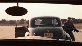 比如,《教父 I》里面有一个让人印象深刻的简短场景,就是老大桑尼被伏击射杀的全过程。桑尼听到妹妹被家暴的消息,冲动之下独自驾车出门。路经一个收费站时被前车挡住了去路,在桑尼递出钞票缴费的下一秒,收费员弯下腰,四周冒出来一群全副武装的人,直接用枪把桑尼打成了筛子,诸如此类。