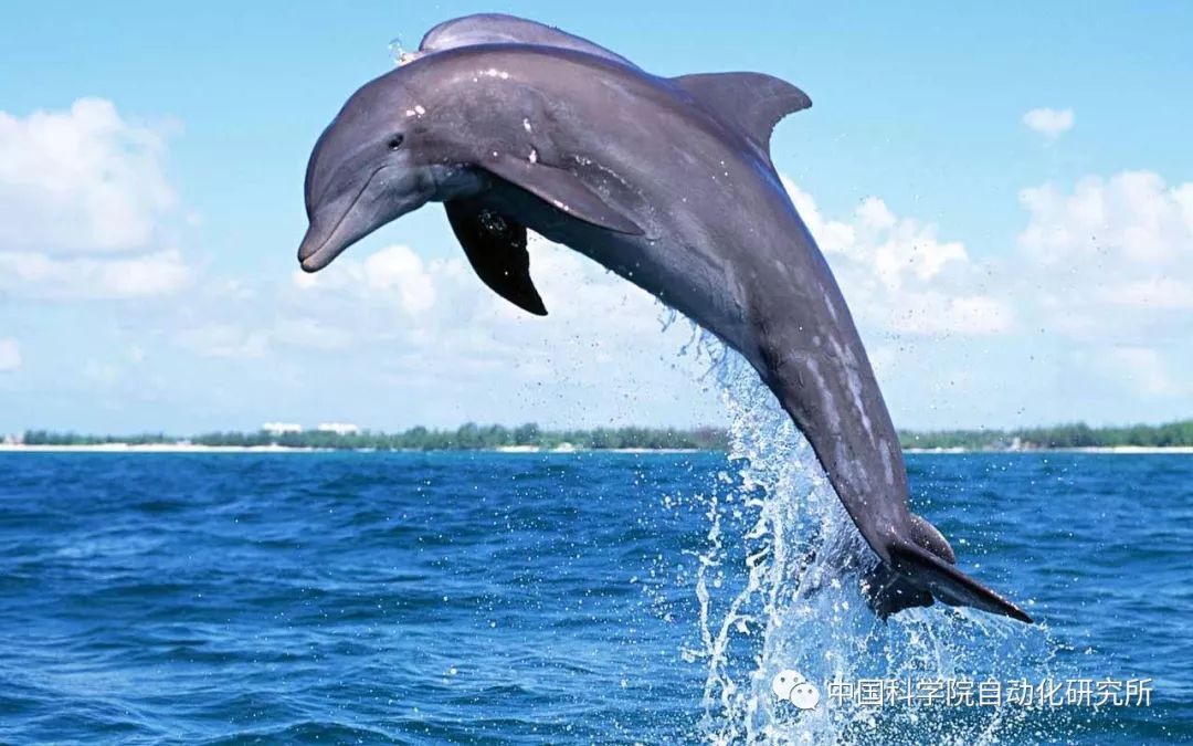 海豚,被称为海中灵魂。是世界上最聪明的海洋生物,依靠身体脊椎和尾鳍的上下拍动产生强劲的动力,其流线型的身体降低在水中的阻力,最大游动速度可达11 m/s,推进效率高达75%-90%,并能实现高速转向。海豚的游动性能是人类现有水下航行器所无法比拟的。