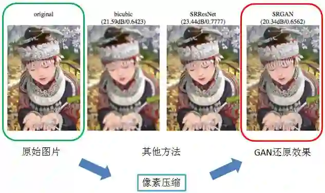 超清图像的还原可以用于图像的加解码及其相关应用。例如,在线视频对其就有很强的应用需求。图1展示了GAN对于超清图像的还原效果,可以看到GAN是目前对超清图片还原效果最佳的模型之一。