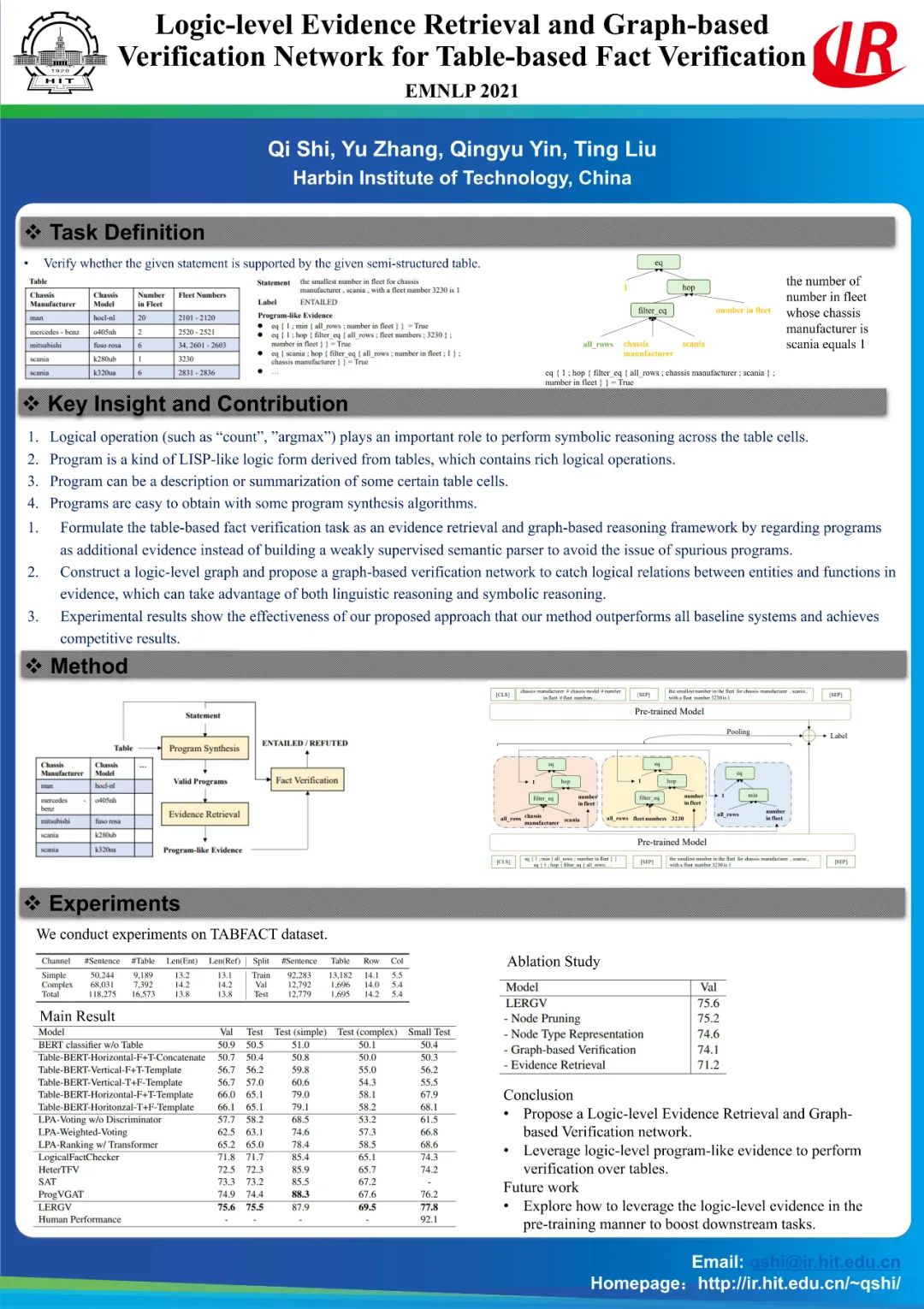 面向表格的事实验证任务的主要目的是根据给定的表格来判断自然语言输入的正确性。不同于其他形式的事实验证系统,表格事实验证任务需要对表格中单元格之间的逻辑关系进行推理,带有逻辑操作的符号推理在这一任务中起到了非常重要的作用。逻辑表达式中包含着必要的逻辑操作,从而可以对表格中观测到的事实进行总结与描述,利用逻辑表达式传达的信息可以更好的理解表格,从而提升表格事实验证任务的性能。本文提出了一种简单有效的范式,利用自动化的方式获取表格中的证据来加强对表格数据的理解,并通过基于图神经网络的方法来对获取到的证据进行建模,获得了显著的性能提升。