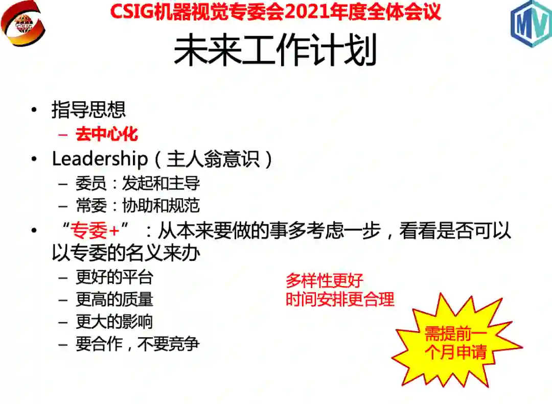林主任进一步详细介绍了本专委的年度学术会议“CSIG-机器视觉与智能研讨会”,第一届已经成功在福州大学举办,希望委员们积极申办2022年的“CSIG-机器视觉与智能研讨会”。