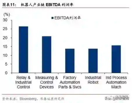 工业自动化行业的总回报与增加值呈现一定的正相关关系。从近 5-10 年的投资回报的角 度来看,关键零部件生产(继电器与工业控制、测量和控制设备)与模块零部件生产(工 厂自动化零部件与服务)的回报率较高,而加工组装(机器人本体生产)回报率较低。