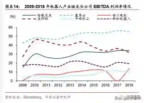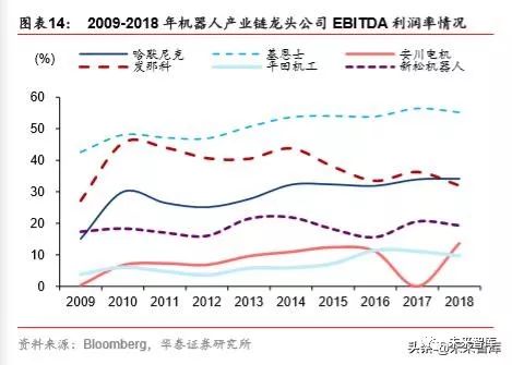 从收入体量来看,工业自动化产业价值链各环节的龙头公司主要集中在日本,尤其是增加 值较高的关键零部件和模块零部件生产环节。例如工业自动化零部件龙头哈默尼克在近 10 年中回报率高达 1743%,其 2018 年 EBITDA 利润率也高达 34.14%,体现出较高的产 品附加值。