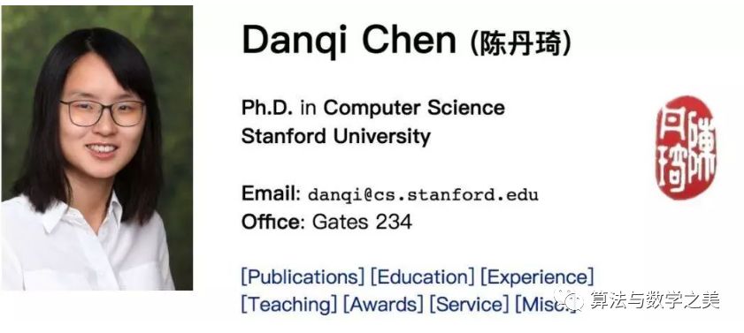 陈丹琦目前正在访问 Facebook 人工智能研究院 Facebook AI Research 和华盛顿大学,在今年秋季,她即将前往普林斯顿大学计算机科学系担任助理教授。