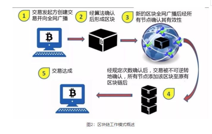 (2)经广播的交易通过全网每个节点运用特定算法进行确认,运算最快最好的节点会将一段时间内所有被确认的交易记录归集形成数据区块;