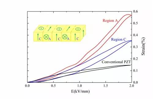 近年来学者们采用各种方法来提高压电材料的致动应变,主要有三类途径:1)发展弛豫型铁电单晶(如PMN-PT、PZN-PT),通过电场诱导相变来提高其电致应变;2)发展无铅压电陶瓷,同样通过电场诱导的铁电相变产生大应变;3)通过可逆的铁弹畴变来实现大的电致应变。但这些方法或者由于稳定性不好,或者电场和滞回太大,或者需要施加预应力,不能真正在工业中得到应用。