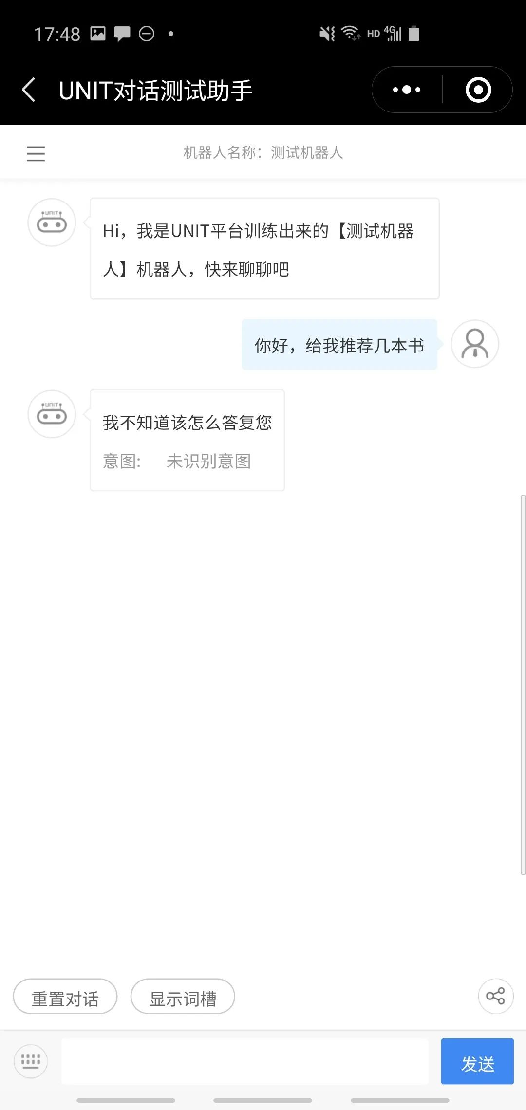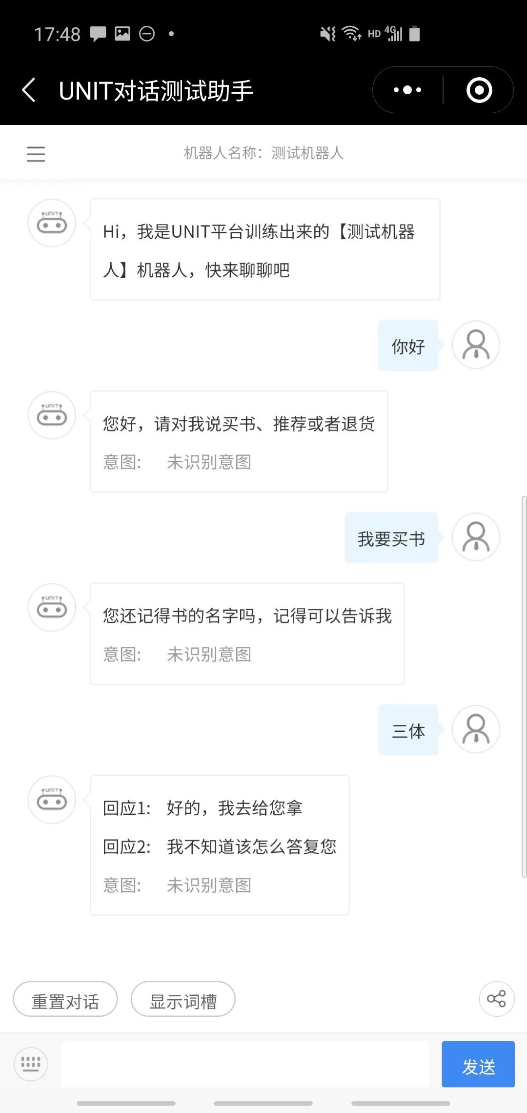 如果你想自己在UNIT里完善和体验这个机器人,请在后台发送“技能分享码”,便可以在UNIT上用收到的分享码码导入卖书机器人啦。