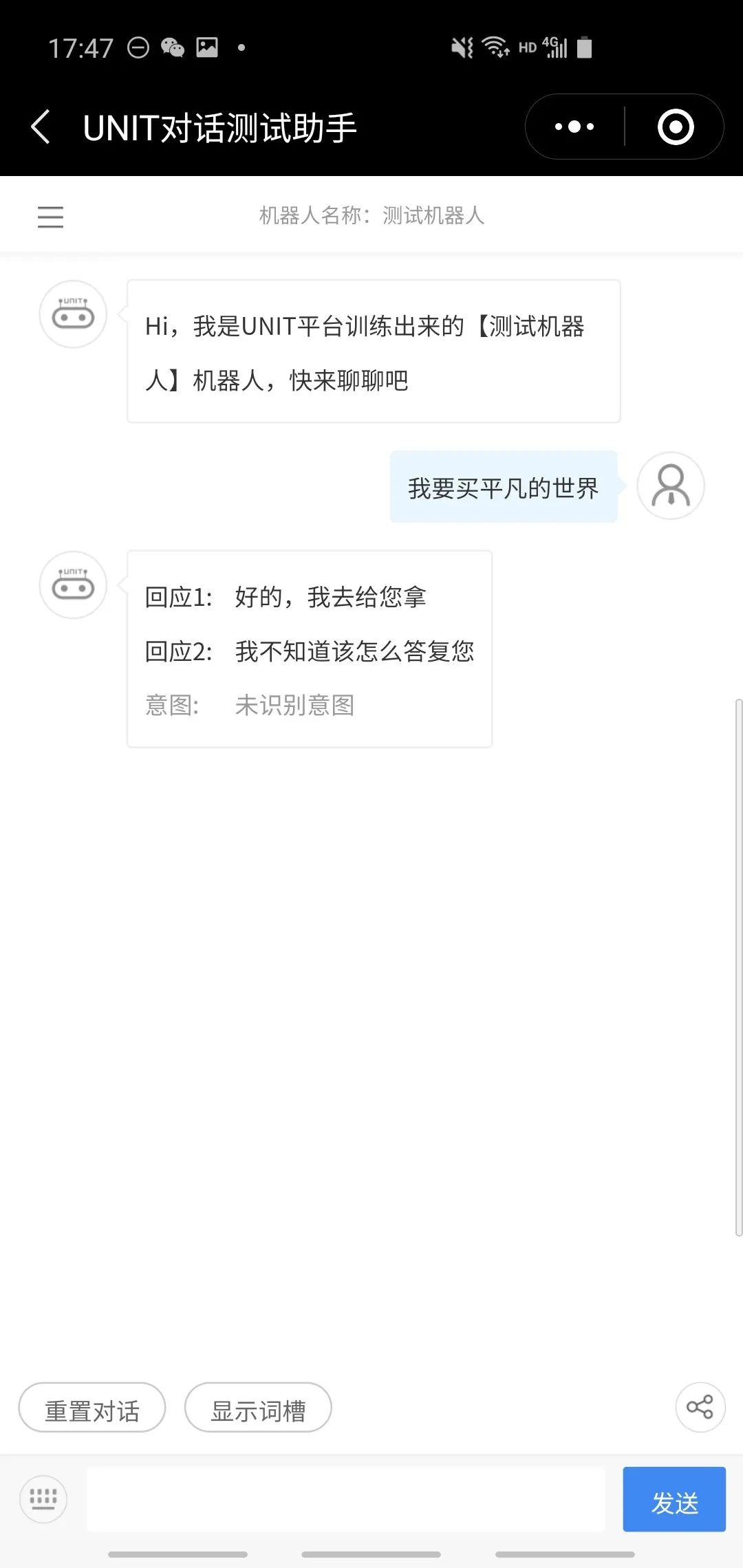 为了让大家可以快速测试,我们在公众号后台绑定了这个机器人,欢迎大家关注我们后到后台试试。UNIT研发环境每天请求次数有限,大家先测先得。