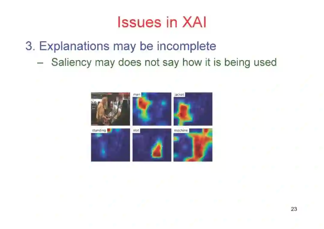 随着广泛的应用,人工智能(AI)催生了一系列与人工智能相关的研究活动。其中一个领域就是可解释的人工智能。它是值得信赖的人工智能系统的重要组成部分。本文概述了可解释的人工智能方法,描述了事后人工智能系统(为先前构建的常规人工智能系统提供解释)和事后人工智能系统(从一开始就配置为提供解释)。解释的形式多种多样:基于特征的解释、基于说明性训练样本的解释、基于嵌入式表示的解释、基于热度图的解释。也有结合了神经网络模型和图模型的概率解释。可解释人工智能与许多人工智能研究前沿领域密切相关,如神经符号人工智能和机器教学