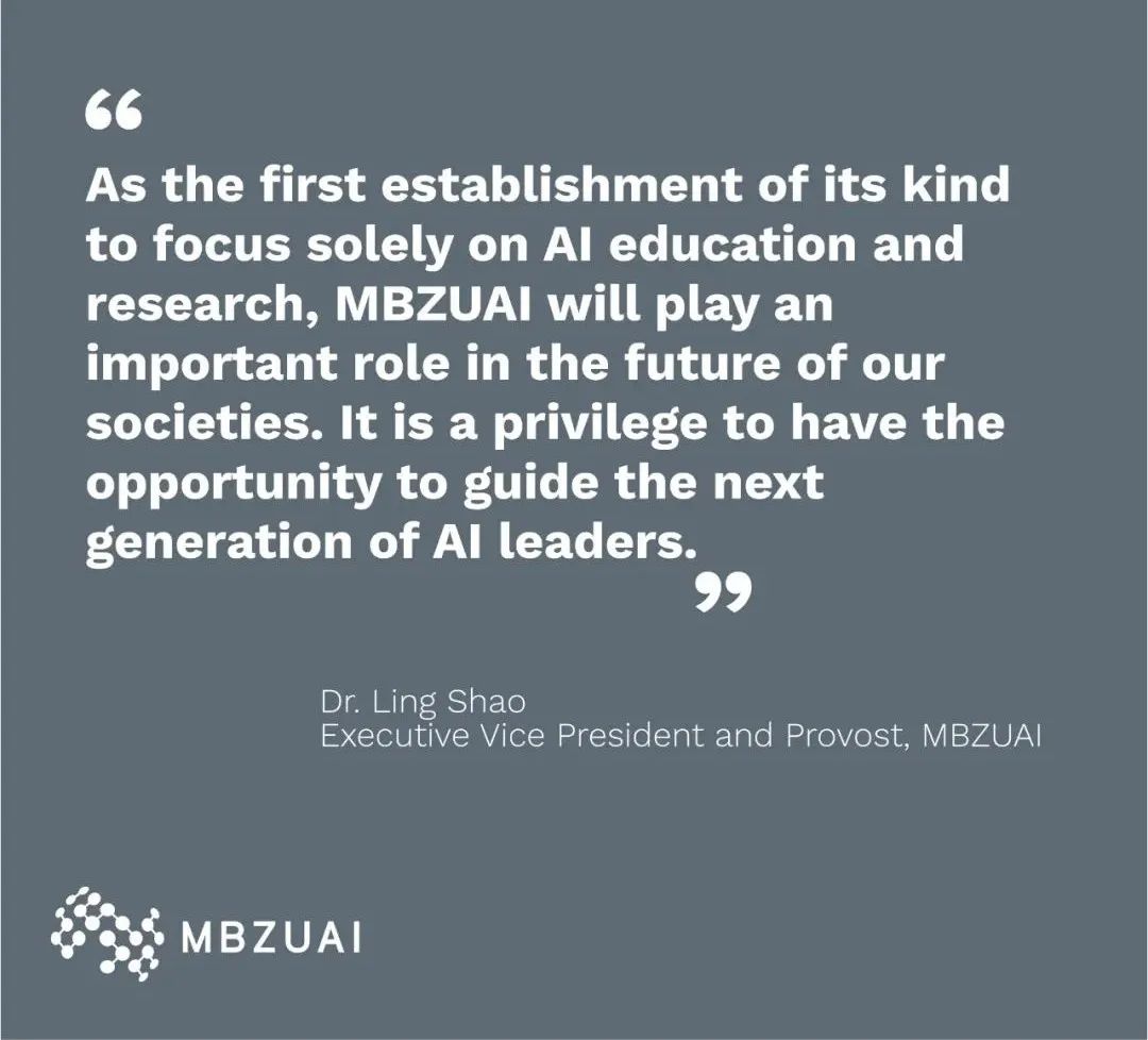 邵博士将领导MBZUAI的学术事务和研究,确保该大学在AI领域提供世界一流的高等教育和研究。