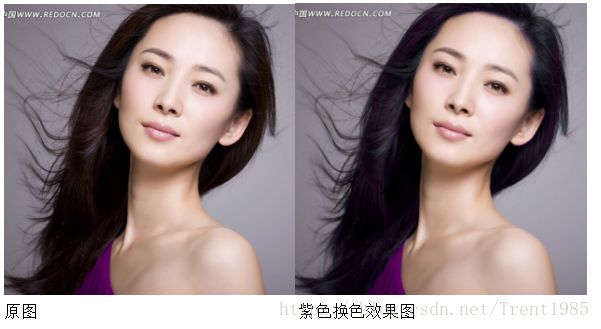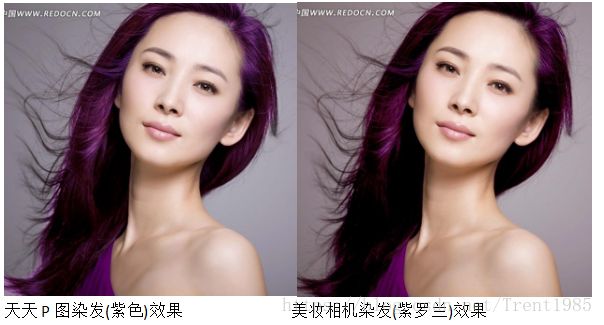 下面,我们给出天天P图和美妆相机对应紫色的换发色效果: